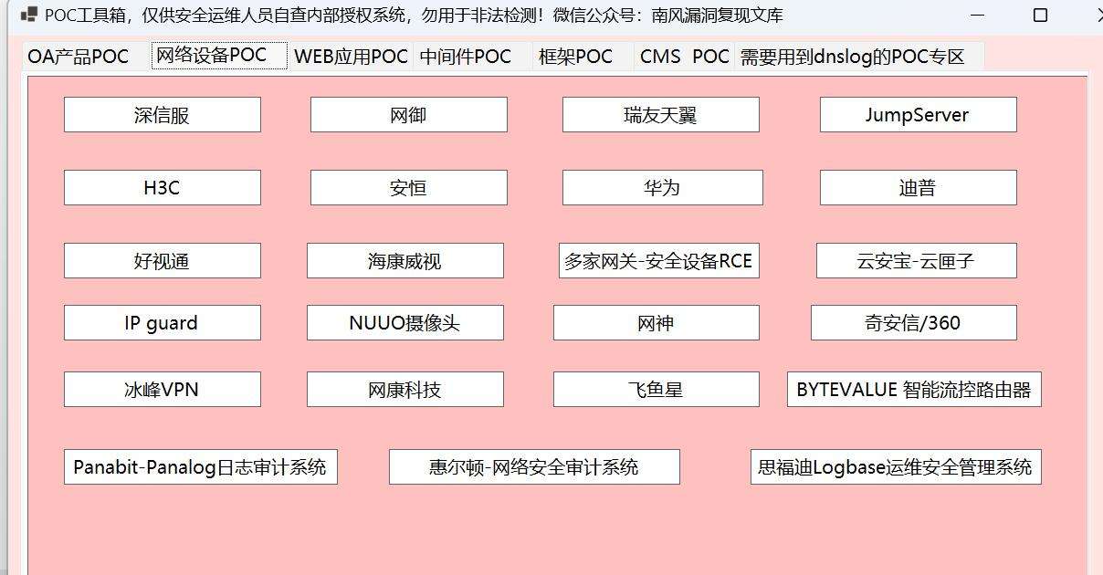 本期漏洞及往期漏洞的批量扫描POC及POC工具箱已经上传知识星球:南风网络安全 1: 更新poc批量扫描软件,承诺,一周更新8-14个插件吧,我会优先写使用量比较大程序漏洞。 2: 免登录,免费fofa查询。 3: 更新其他实用网络安全工具项目。 4: 免费指纹识别,持续更新指纹库。 5: Nuclei脚本。