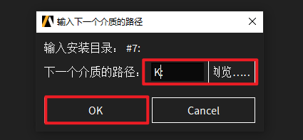 54.回到软件安装界面,点击“浏览”选择“K”盘(上一步显示的盘符),点击“选择文件夹”,点击“OK”,软件继续安装