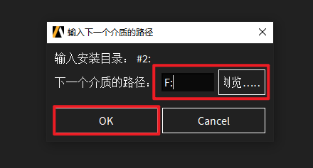 39.回到软件安装界面,点击“浏览”选择“F”盘(上一步显示的盘符),点击“选择文件夹”,点击“OK”,软件继续安装