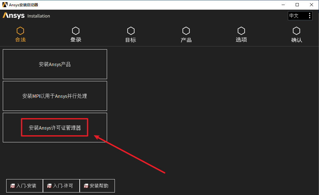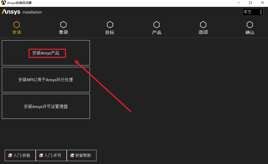 25.点击“安装ANSYS产品”