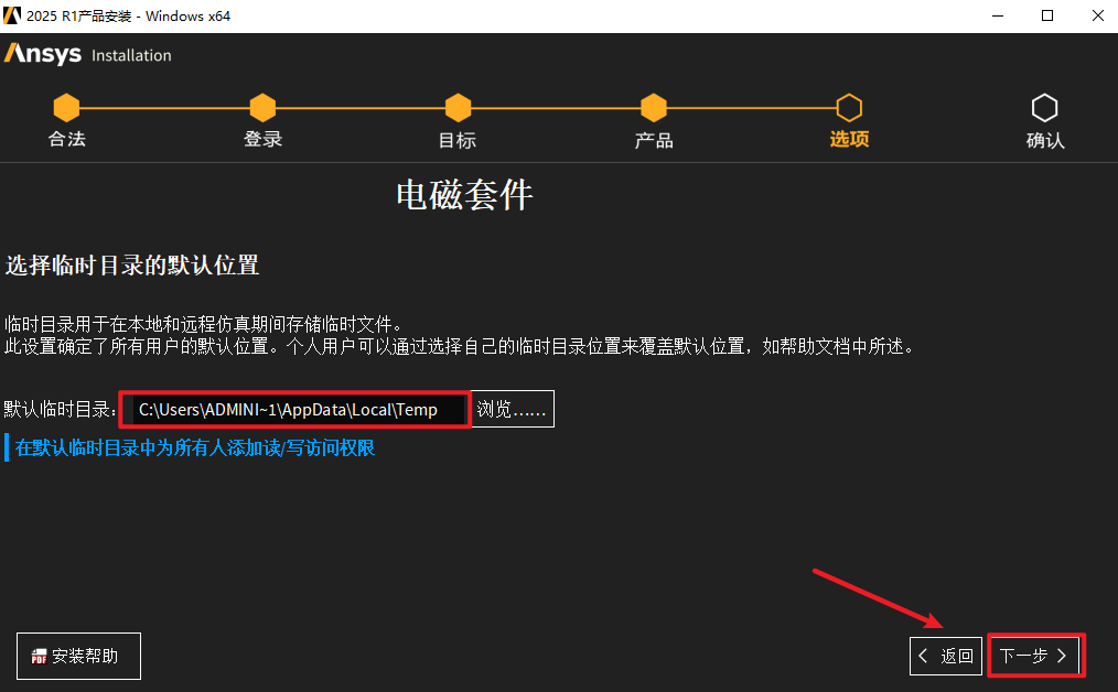 31.临时目录根据需要选择存放位置,点击“下一步”