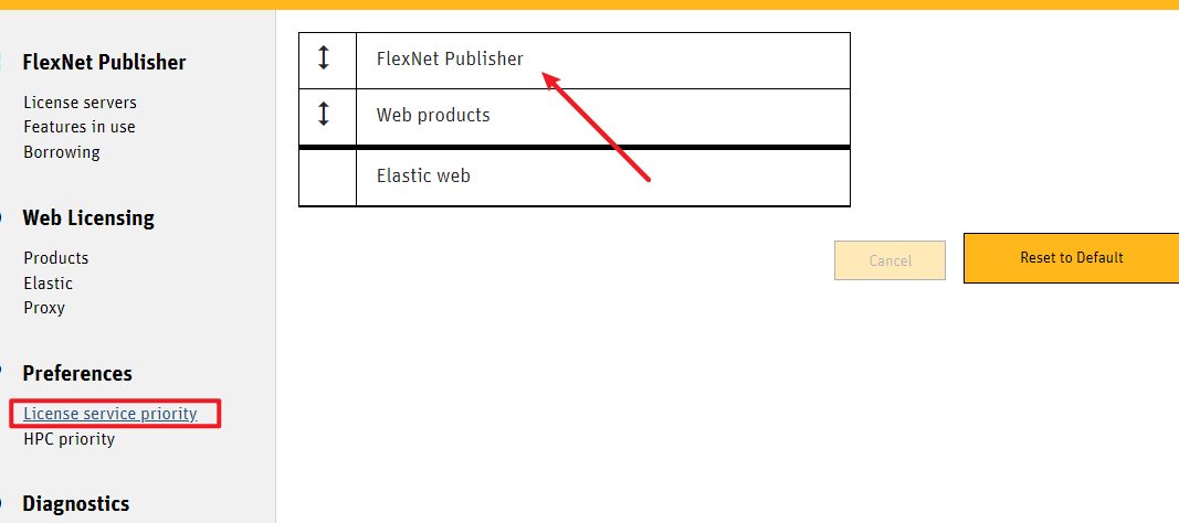 69.打开“License service priority”,确保“FlexNet Publisher”在最上边第一个