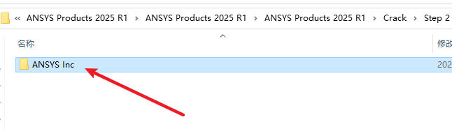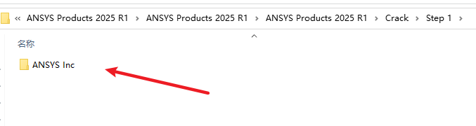 12.返回之前解压的“ANSYS Products 2025 R1”文件夹,,依次打开“Crack-Step 1”文件夹,选复制“ANSYS Inc”文件