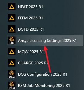 67.点击“开始“菜单栏,点击展开“Ansys 2025 R1“,点击打开“Ansys Licensing Settings 2025 R1“