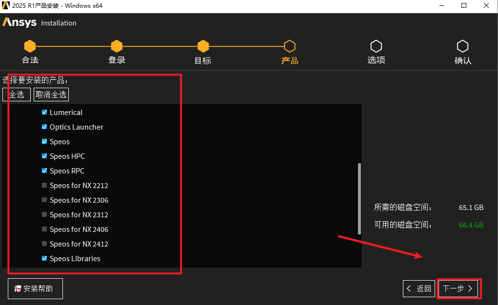 28.选择需要安装的产品,软件默认勾选Electronics、Lumerical、Zemax三个组件,可以根据自己的需要选择,点击“下一步”
