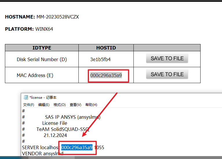 18.将打开的文本中“XXXXXXXXXXXX”替换HOSTID下的文字(前后都有空格,注意不要删除了)