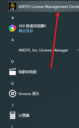 15.在开始菜单中找到证书管理中心“ANSYS License Manager Center“,点击打开