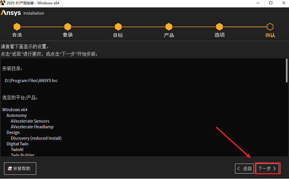 35.确认安装信息,点击“下一个”
