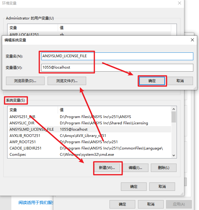 62.添加变量名 “ANSYSLMD_LICENSE_FILE”和环境变量值“1055@localhost”