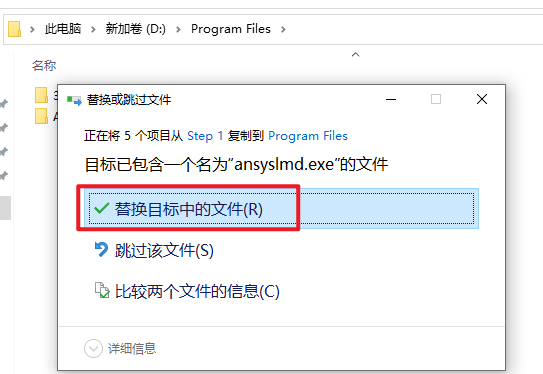 14.选择“替换目标中的文件“